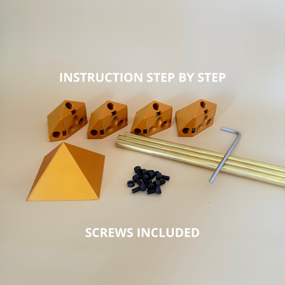 🌿 This pyramid connector kit with top tip is designed for easy and sturdy assembly of a Giza-inspired pyramid structure. Suitable for both indoor and outdoor use, the connectors fit tubes with an outer diameter of 6–20 mm.
